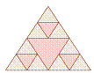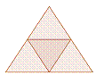 Paso 4: Para cada uno de los tres triángulos restantes aplicamos nuevamente los pasos 2 y 3. La región formada por los triángulos no desechados se llama triángulo de Sierpinski de orden 2.