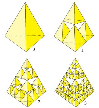 El triángulo de Sierpinski se puede generalizar a una figura en 3D,