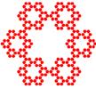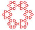 De los tres el que tiene unas propiedades más interesantes es el hexágono, ya que como se puede ver en las imágenes la parte central del fractal (y por extensión la de los otros hexágonos más pequeños) forman un copo de Koch, y del mismo modo los perímetros cada lado de un hexágono son curvas de Koch.