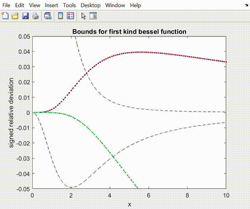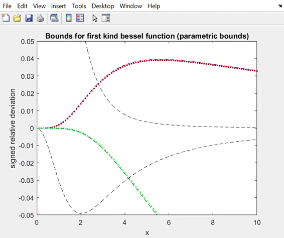 B)/B with R the ratio of Bessel functions and B the bound. R=In(x)/In-1(x), n=0.95